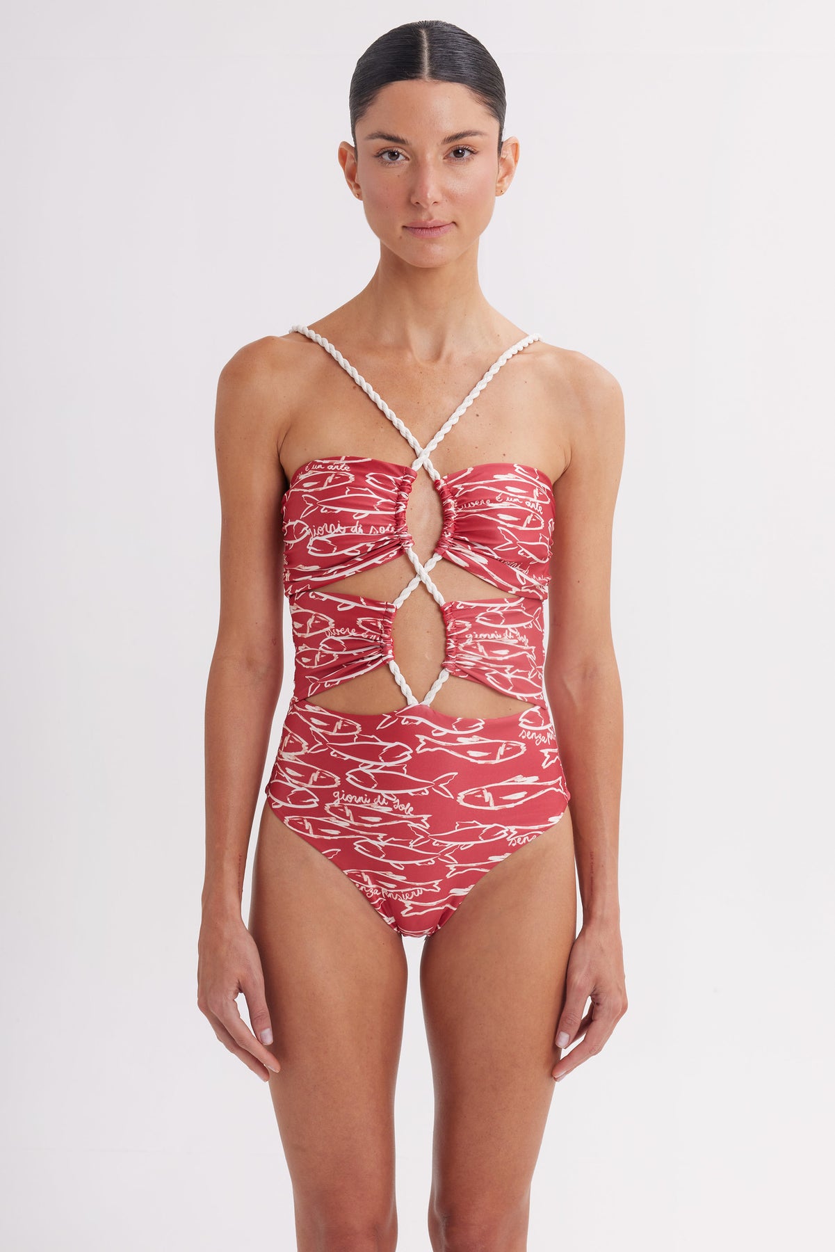 Bold and sculptural, the Salma Coralle One Piece is designed to make a statement. The vibrant coral print brings energy and personality, while the cut-out silhouette creates a striking, body-contouring effect.
